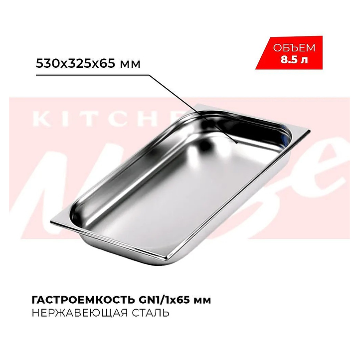 Гастроемкость Kitchen Muse 811-2 GN1/1-65 (530х325х65) нерж.