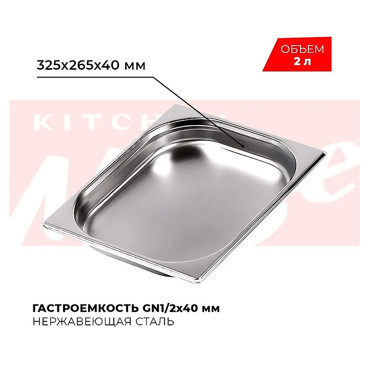 Гастроемкость Kitchen Muse 812-40 GN1/2-40 (325х265х40) нерж.