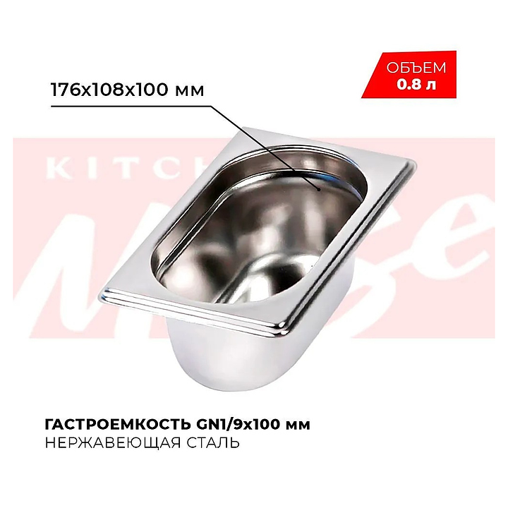 Гастроемкость Kitchen Muse 819-4 GN1/9-100 (176х108х100) нерж.
