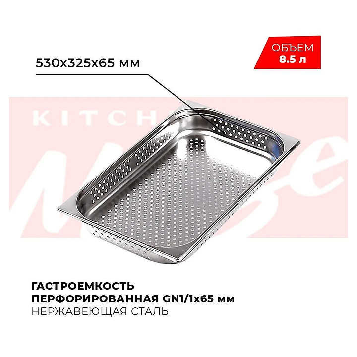 Гастроемкость Kitchen Muse 811-2P GN 1/1-65 (530х325х65) нерж., перф.