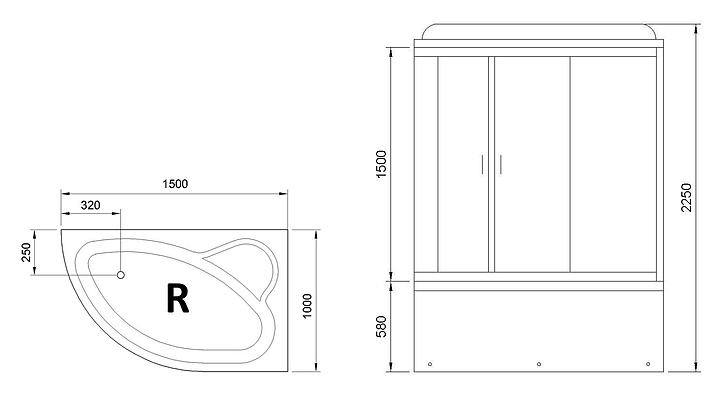 Душевая кабина с гидромассажем Royal Bath RB 150ALP-T-CH-R+P 150х100х225 см правая, с парогенратором