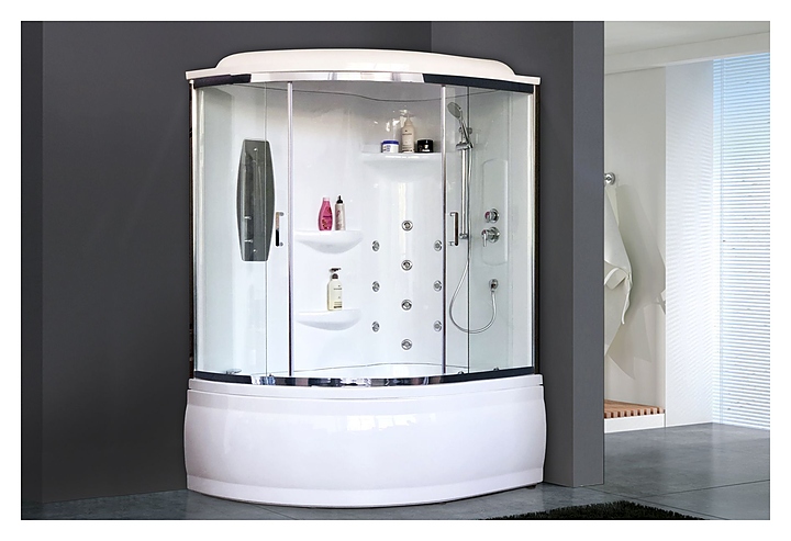 Душевая кабина Royal Bath RB150ALP-T-CH-R используется в ванных комнатах. Модель оснащена парогенератором, 10 съемными самоочищающимися форсунками для деликатного массажа спины, зеркалом и душевой лейкой. Наличие сиденья обеспечивает максимальный комфорт при приеме душа, а на полке можно размещать необходимые мыльные принадлежности. Изделие выполнено из акрила, устойчивого к механическим повреждениям, обладающего небольшим весом и повышенной шумоизоляцией, безопасного закаленного стекла и усиленного алюминиевого профиля. Для соединения сифона и канализационной трубы, необходимо доукомплектовать сифон гибкой трубой диаметром 1/4 дюйма. В комплект поставки входят сифон, смеситель и полка. Особенности: