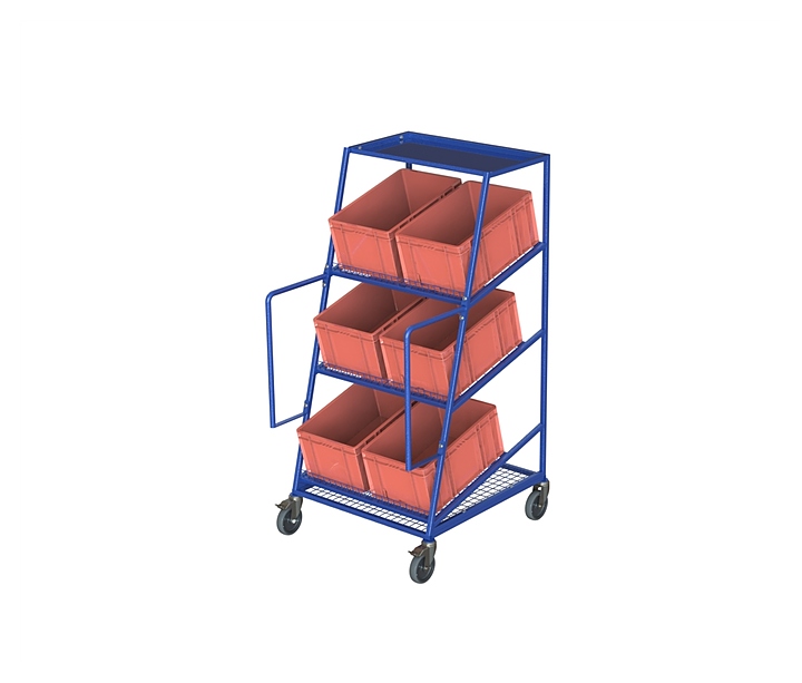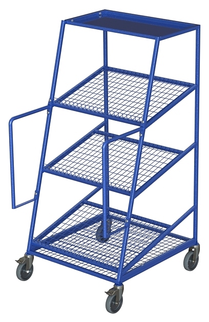 Тележка для пикинга Нова-склад SW01 предназначена для транспортировки и хранения ящиков максимальных габаритов на складах и рабочих станциях, предприятиях пищевой промышленности, в торговых и производственных помещениях. Модель оснащена 3 сетчатыми полками с бортиками-ограничителями. Верхняя полка выполнена из металлического листа, опорные поверхности полок - из металлической сетки. Внимание! Колеса в комплект поставки не входят и приобретаются отдельно. Особенности: