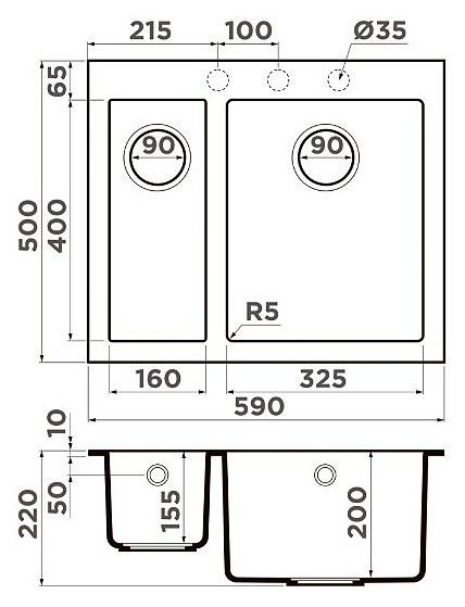 Кухонная мойка Omoikiri Bosen 59-2-BL предназначена для установки в частных домах, квартирах, офисах, отелях, гостиницах и на различных предприятиях для мытья столовых принадлежностей, посуды, приборов, инвентаря и продуктов питания. Изделие выполнено из искусственного гранита TETOGRANIT®, который является сочетанием натурального гранита и акриловой смолы, благодаря чему мойка выдерживает высокие температуры и удары. Покрытие TETORON® обладает повышенной устойчивостью к появлению бактерий и грибка, а также надежно защищает от воздействия агрессивных внешних факторов. В комплект поставки входят сифон, донный клапан и крепления. Особенности: