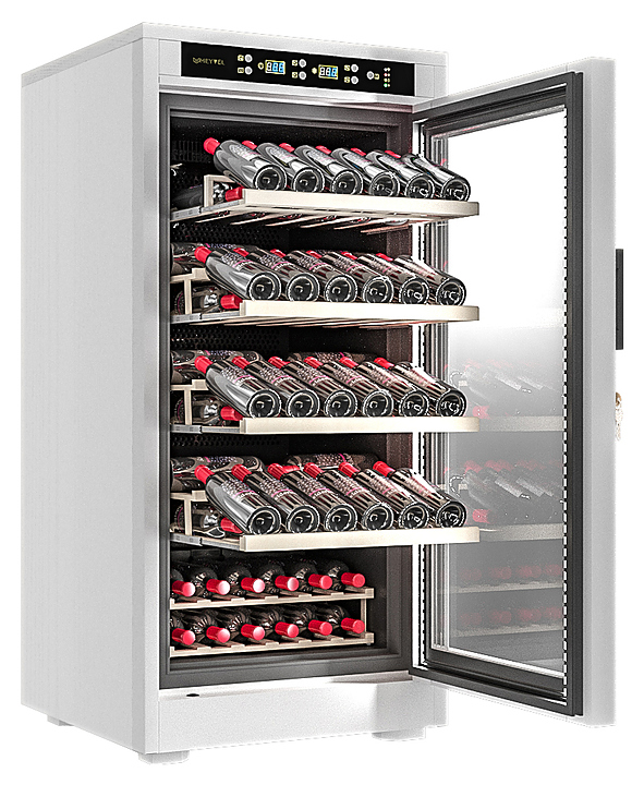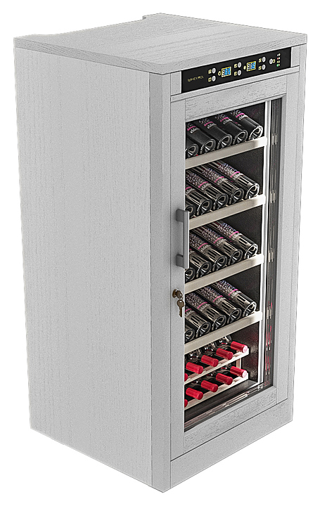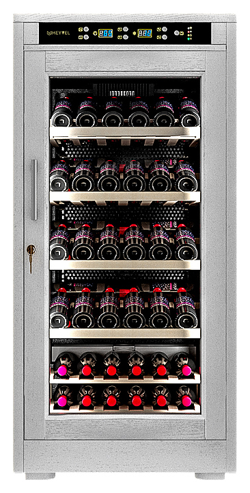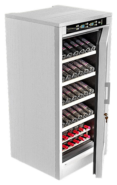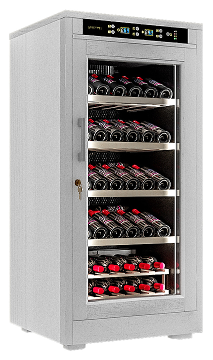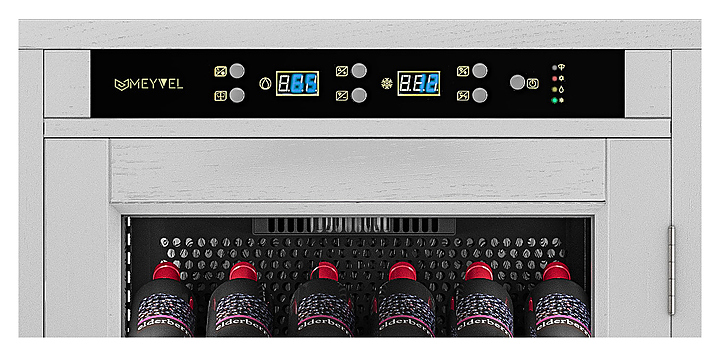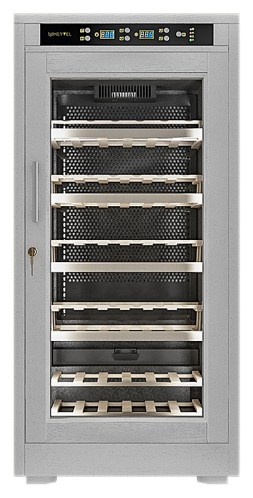 Винный шкаф MEYVEL MV66-WW1-M предназначен для демонстрации, хранения и создания оптимальных условий для сохранения всех вкусовых свойств вина в бутылках на предприятиях общественного питания, торговли, в барах, ресторанах, специализированных магазинах, частных домах или квартирах. Модель оснащена сенсорной панелью управления, электронным термостатом и светодиодной подсветкой. Корпус выполнен из обшитой белым американским дубом стали, дверь - из деревянной рамы и двойного стекла с защитой от ультрафиолетовых лучей, полки - из массива бука, ручка двери - из стали. Особенности: