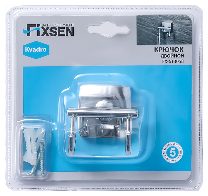 Двойной крючок Fixsen Kvadro FX-61305B используется в ванных комнатах для размещения халатов, белья и полотенец. Элегантный аксессуар идеально дополнит дизайн любой ванной комнаты. Изделие выполнено из латуни, что обеспечивает надёжное и долгосрочное использование. В комплект поставки входит набор крепежей для скрытого монтажа. Дополнительные характеристики: