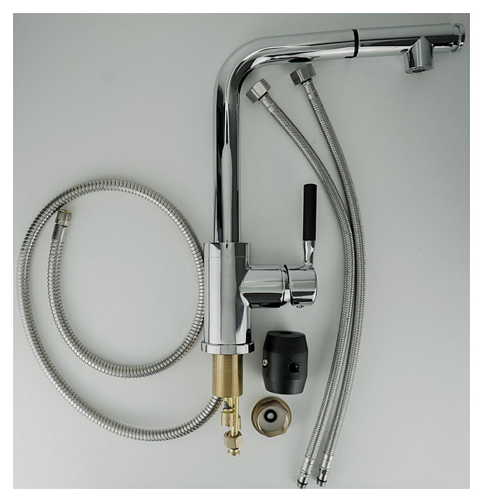 Смеситель ESKO KITCHEN K12 предназначен для подачи горячей и холодной воды в кухонных помещениях. Модель оснащена вытяжным изливом и керамическим картриджем, обеспечивающим плавный ход рычага смесителя, контроль и точность при выборе напора и температуры воды. Крепление FastFix позволяет надежно монтировать смеситель без использования инструментов. Изделие выполнено из латуни, отличающейся прочностью, долговечностью и устойчивостью к перепадам температур. В комплект поставки входят гибкая подводка и груз-утяжелитель для вытяжного шланга. Особенности: