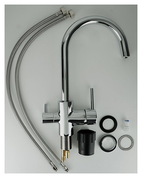 Смеситель ESKO KITCHEN K2 предназначен для подачи горячей и холодной воды в кухонных помещениях. Модель оснащена переключателем с керамическими пластинами, каналом для фильтрованной воды с аэратором и керамическим картриджем, обеспечивающим плавный ход рычага смесителя, контроль и точность при выборе напора и температуры воды. Крепление FastFix позволяет надежно монтировать смеситель без использования инструментов. Изделие выполнено из нержавеющей стали, отличающейся прочность и долговечностью. В комплект поставки входит гибкая подводка и шланг подключения к фильтру. Дополнительные характеристики: