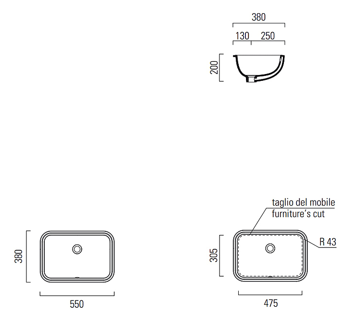 Раковина встраиваемая снизу GSI PURA 724311 55х38х20 см, фаянс