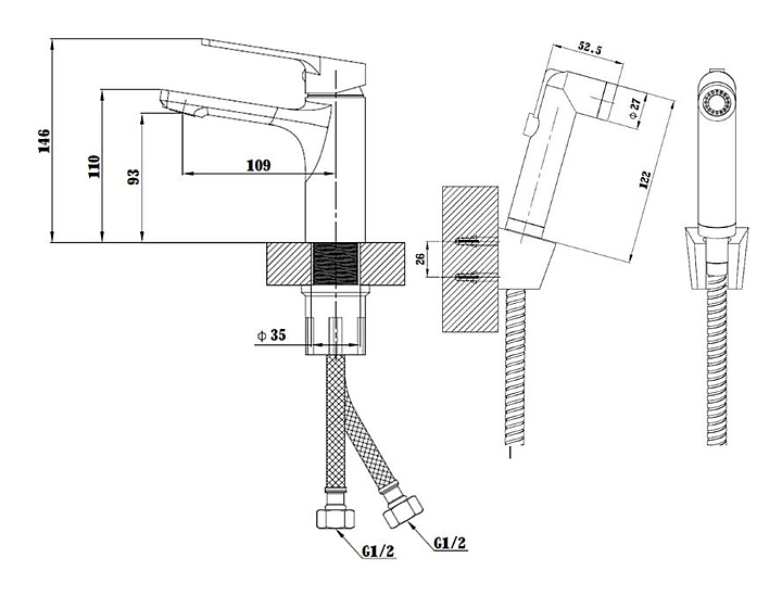 Смеситель для раковины и биде ESKO SINGAPORE black SB 27H с гигиеническим душем