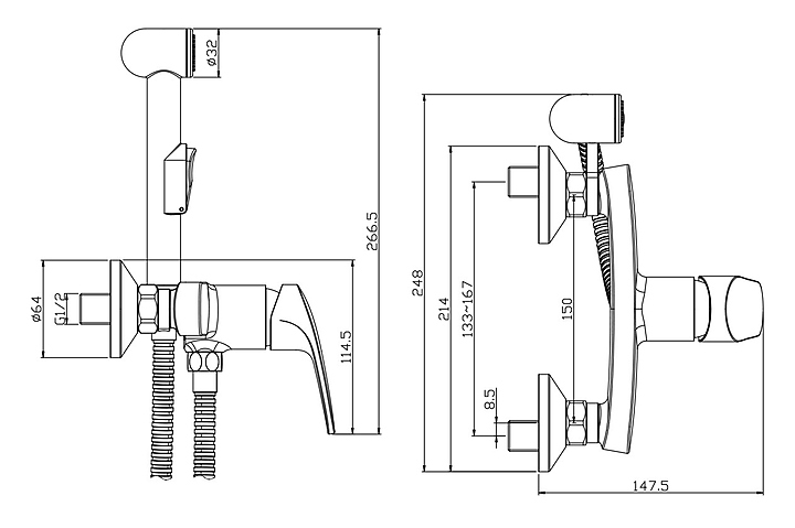 Смеситель Rossinka RS45-52 предназначен для использования в ванных помещениях для подачи горячей и холодной воды. Модель оснащена гигиеническим душем. Пластиковый аэратор экономит расход воды, уменьшает шум, снижает количество брызг и отличается легкой очисткой. Изделие выполнено из высококачественной латуни, отличающейся прочностью, долговечностью и устойчивостью к перепадам температур. В комплект поставки входят шланг, лейка, настенное крепление, 2 подводки и крепления. Особенности: