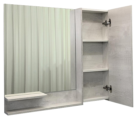Зеркало Comforty Верона-90 дополнит интерьер любой ванной комнаты. Благодаря подвесной конструкции модель не занимает много места, что позволяет экономить пространство в ванной комнате, а также облегчает уборку. Модель оснащена 2 открытыми полками в нижней части, шкафчиком с распашной дверцей, петлями с функцией плавного закрывания и 2 полками внутри. Корпус и фасад выполнены из влагостойкой ЛДСП, зеркальное полотно - амальгамой на основе серебра. Дополнительные характеристики: