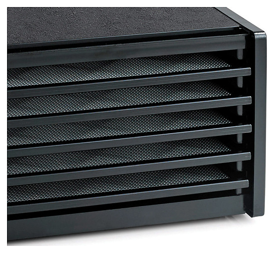 Дегидратор Excalibur 4548CDFB предназначен для сушки овощей, фруктов, ягод, орехов, грибов и трав, расстойки теста, приготовления йогурта, вяления мяса и рыбы на предприятиях общественного питания и в домашних условиях. Модель оснащена расположенными в задней стенке нагревательным элементом и вентилятором, электронным термостатом, съемной дверцей, панелью управления с выключателем и поворотным регулятором. Лотки выполнены из высококачественного поликарбоната без содержания бисфенола А (BPA). В комплект поставки входят 5 лотков с гибкими вставками. Особенности: