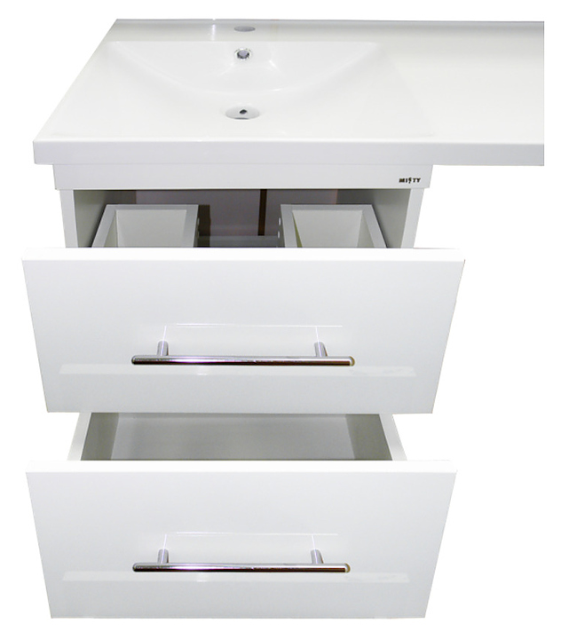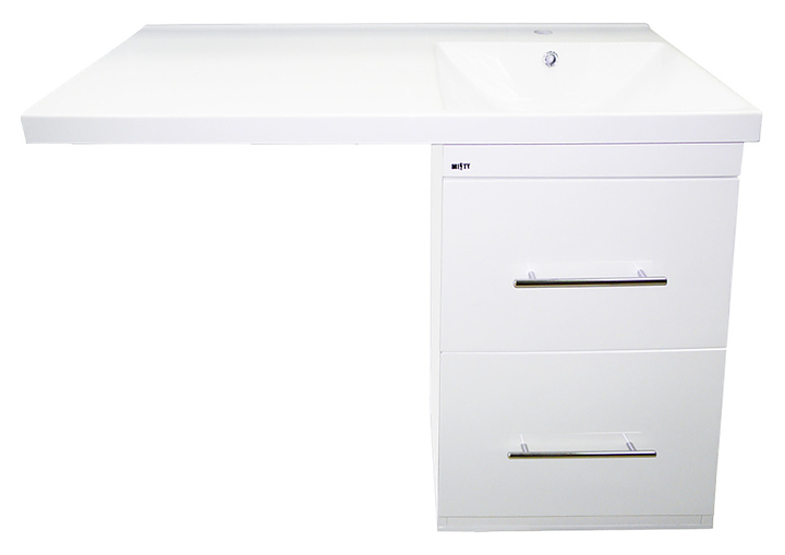 Тумба под раковину Misty Мексика-50 выполнена в современном стиле и идеально впишется в интерьер любой ванной комнаты. Напольная конструкция обеспечивает легкий монтаж и не требует специального ремонта в помещении. Модель оснащена 2 выдвижными ящиками с направляющими с доводчиками скрытого монтажа. Корпус изделия выполнен из ЛДСП с глянцевым покрытием, фасад - из МДФ с глянцевым покрытием. Тумба может использоваться с раковиной Мексика 105 левая и Мексика 105 правая. Комплектация: