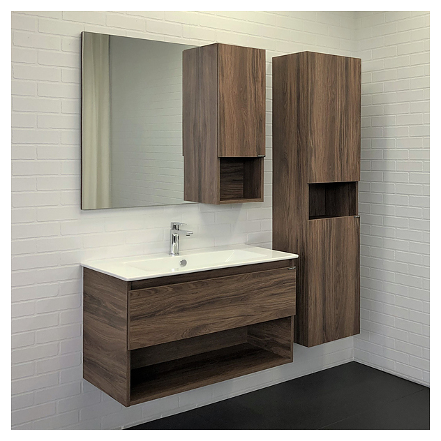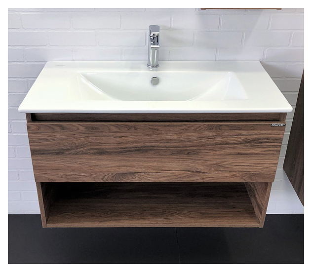 Тумба Comforty Бордо-90 с белой раковиной Quadro 90