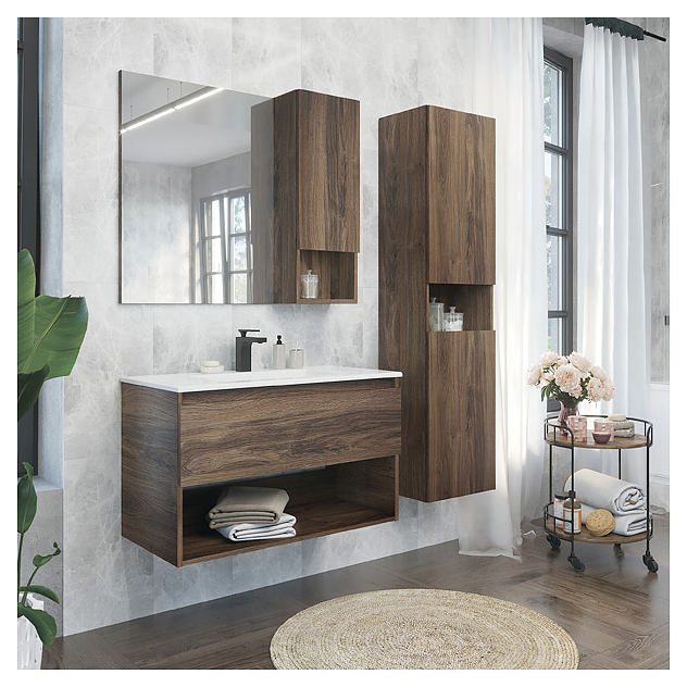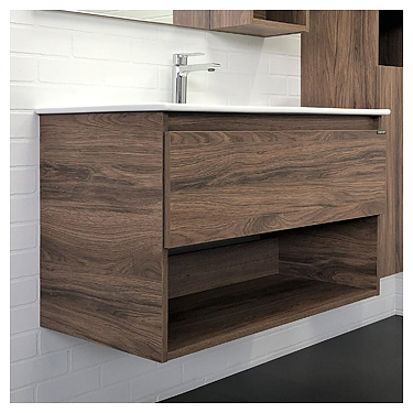 Тумба с раковиной Comforty Бордо-90 дополнит интерьер ванной комнаты. Благодаря подвесной конструкции модель не занимает много места, что экономит пространство и облегчает уборку. Тумба оснащена открытой полкой в нижней части и выдвижным ящиком плавного закрывания. Раковина имеет слив-перелив. Тумба выполнена из влагостойкой ЛДСП, раковина - из санфарфора, обладающего повышенной прочностью и устойчивостью к негативным внешним факторам, а также долгое время сохраняет идеальную белизну и не впитывает запахи и грязь. В комплект входит белая раковина Quadro 90. Дополнительные характеристики: