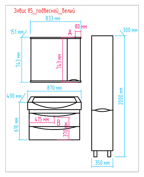 Тумба под раковину Misty Элвис-85 83,2х44 см, с 2 ящиками, подвесная, белая