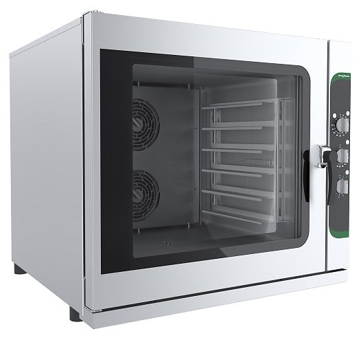 Пароконвектомат Пищевые Технологии ПР-06М-Э предназначен для приготовления широкого спектра блюд, выпечки хлебобулочных и кондитерских изделий в гостиничном и ресторанном бизнесе, на предприятиях пищевой промышленности, общественного питания и торговли. Может использоваться самостоятельно или в составе технологической линии. Модель оснащена электромеханической панелью управления, универсальными направляющими для гастроемкостей и противней и ручным таймером. В комплект поставки входят шланг для подключения к системе водоснабжения. Рекомендуется дополнительно приобрести водоумягчитель и фильтр-систему для очистки и смягчения воды. Подробнее о необходимости водоподготовки читайте здесь. Особенности: