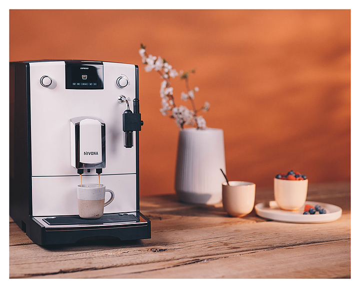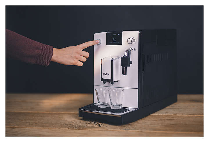 Автоматическая кофемашина Nivona CafeRomatica NICR 560 предназначена для приготовления кофе и напитков на его основе в офисах, гостиницах, заправках, кофейнях, барах, ресторанах и на других предприятиях общественного питания и торговли. Модель оснащена встроенной кофемолкой с коническими жерновами, автоматическим капуччинатором Spumatore, резервуаром для воды и контейнером для зерен с защитными крышками, панелью управления с 2 поворотными регуляторами, цветным TFT дисплеем с графической, символьной и цифровой индикацией. Корпус выполнен из АБС-пластика черного цвета с белым фронтом и хромированными элементами, жернова – из нержавеющей стали. В комплект поставки входят таблетки для очистки, молочная трубка и порционная ложка. Особенности: