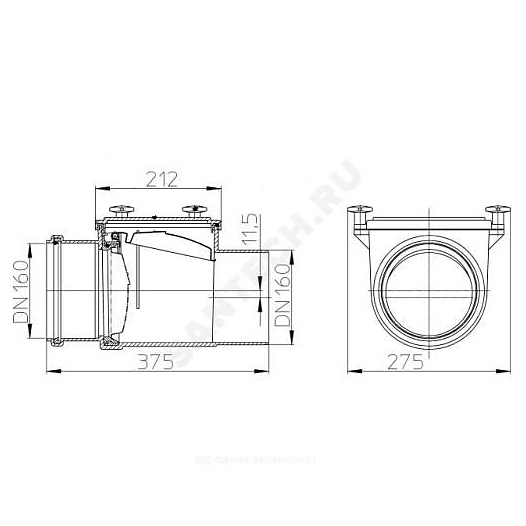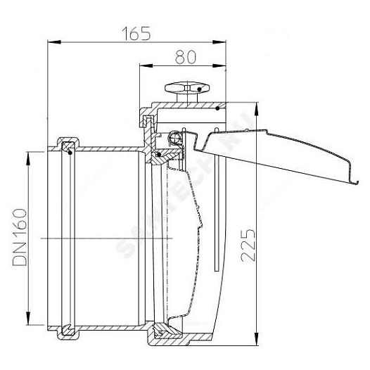 Клапан обратный HL канализационный коричневый Дн 160 б/нап с заслонкой из нерж стали, монтажным лючком 715