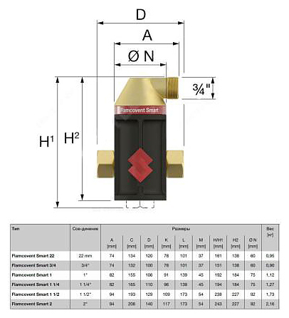 Сепаратор шлама и воздуха Flamco Vent Smart G1¼"F 30004
