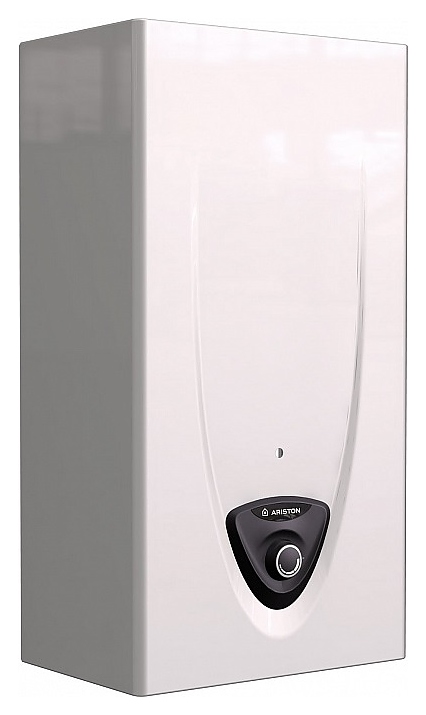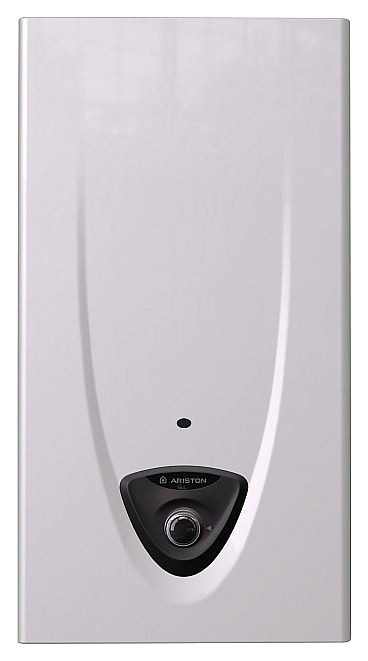 Газовый проточный водонагреватель Ariston FAST EVO ONT B 11 NG RU используется в местных системах водоснабжения для постоянного автономного обеспечения горячей водой одной или нескольких точек водоразбора таких как санитарные узлы, кухни в жилых и загородных частных домах, а также других бытовых и хозяйственных объектах. Модель оснащена горелкой с 11 форсунками, теплообменником с трубчатым контуром, стабилизатором тяги в виде перфорированного короба, дымовыводящим отверстием, резьбовыми штуцерами для подключения газа, подвода холодной и выхода горячей воды, отсеком для батарей и механической панелью управления. Вертикально ориентированный корпус с прямоугольными гранями выполнен из стали с треугольной вставкой черного цвета, теплообменник – из меди. В комплект поставки входят набор монтажных креплений, заводская упаковка, инструкция по эксплуатации и гарантийный талон. Особенности: