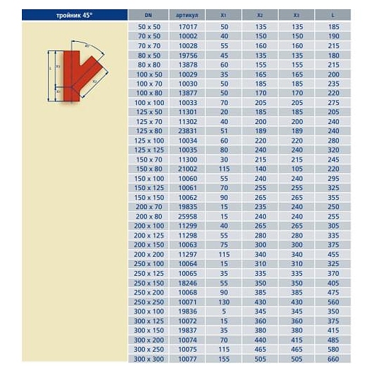 Тройник чугун FP PREIS SML Ду 150х150х45гр б/растр