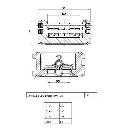 Клапан обратный Ридан 2/створ ЗОД Ду 150 Ру16 межфл створки нерж