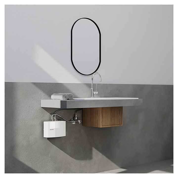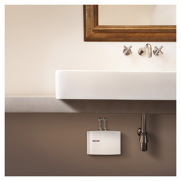 Электрический проточный водонагреватель Stiebel EIL 4 Premium используется в местных системах водоснабжения для постоянного автономного обеспечения горячей водой одной или нескольких точек водоразбора таких как санитарные узлы, кухни в жилых и загородных частных домах, а также других бытовых и хозяйственных объектах. Модель оснащена нагревательной емкостью, термостатом, резьбовыми штуцерами для подвода холодной и выхода горячей воды, а также кабелем питания без вилки. Горизонтально ориентированный корпус с прямоугольными гранями и декоративным рельефом на лицевой панели выполнен из ударопрочного пластика ABS-Luran цвета альпийский белый. В комплект поставки входят гибкий соединительный шланг 3/8" длиной 500 мм с уплотнениями, тройник 3/8", сетчатый фильтр, специальный регулятор струи и инструкция по эксплуатации. Особенности: