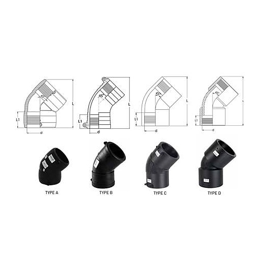 Отвод TEGA электросварной ПЭ100 Дн 160х45гр Ру16 SDR11 Type D