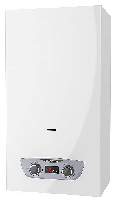 Газовый проточный водонагреватель Ariston FAST R DISPLAY 14L NG используется в местных системах водоснабжения для постоянного автономного обеспечения горячей водой одной или нескольких точек водоразбора таких как санитарные узлы, кухни в жилых и загородных частных домах, а также других бытовых и хозяйственных объектах. Модель оснащена горелкой с 13 форсунками, теплообменником с трубчатым контуром, стабилизатором тяги в виде перфорированного короба, дымовыводящим отверстием, резьбовыми штуцерами для подключения газа, подвода холодной и выхода горячей воды, отсеком для батарей и механической панелью управления с цифровым дисплеем. Вертикально ориентированный корпус с прямоугольными гранями выполнен из металла с антикоррозийным покрытием белого цвета, теплообменник – из меди. В комплект поставки входят набор монтажных креплений, заводская упаковка, инструкция по эксплуатации и гарантийный талон. Особенности: