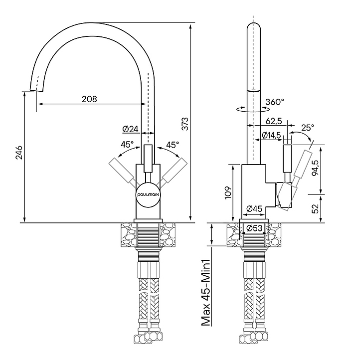 Смеситель Paulmark Holstein Ho212063-431 выполнен в универсальном дизайне и прекрасно впишется в любой интерьер. Изделие выполнено из высококачественной латуни, которая отвечает высочайшим европейским стандартам качества, не содержит свинца, не разрушается со временем и безопасна для здоровья, гибкая подводка - из нержавеющей стали. В комплект поставки входит запасной аэратор. Особенности: