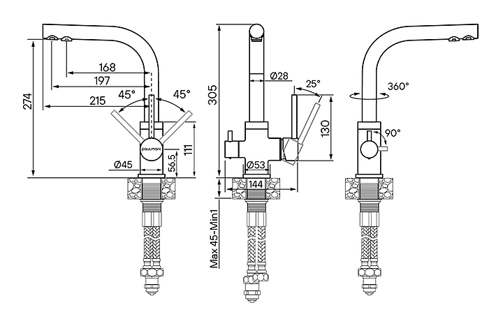 Смеситель Paulmark Essen Es213011-CHCR предназначен для подачи горячей и холодной воды в кухонных помещениях. Модель имеет дополнительный излив для фильтра и аэраторы, которые экономят расход воды, уменьшают шум и снижают количество брызг. Керамический картридж обеспечивает плавный ход рычага смесителя, контроль и точность при выборе напора и температуры воды. Изделие выполнено из латуни, отличающейся прочностью, долговечностью и устойчивостью к перепадам температур. В комплект поставки входят крепления, аэратор и гибкая подводка. Дополнительные характеристики: