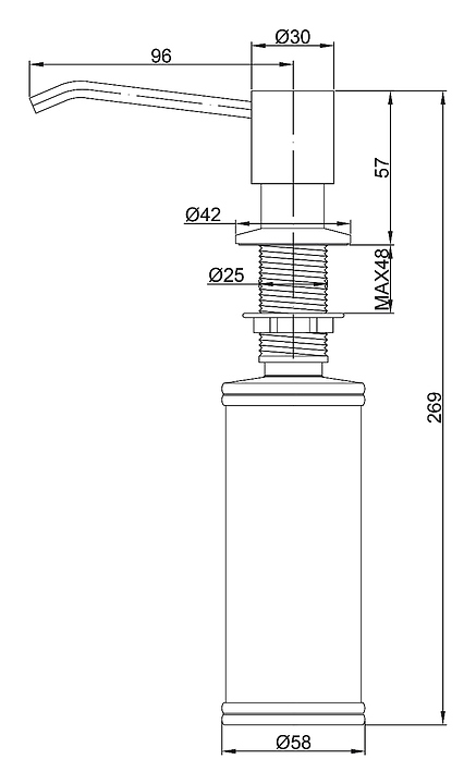 Встраиваемый дозатор Paulmark Rein D002-418 предназначен для подачи жидкого мыла или моющего средства на кухне. Изделие выполнено из латуни и пластика. Дополнительные характеристики: