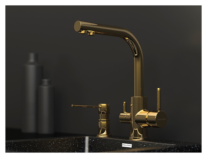 Встраиваемый дозатор Paulmark Kraft D003-G предназначен для подачи жидкого мыла или моющего средства на кухне. Изделие выполнено из латуни и пластика. Дополнительные характеристики: