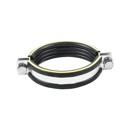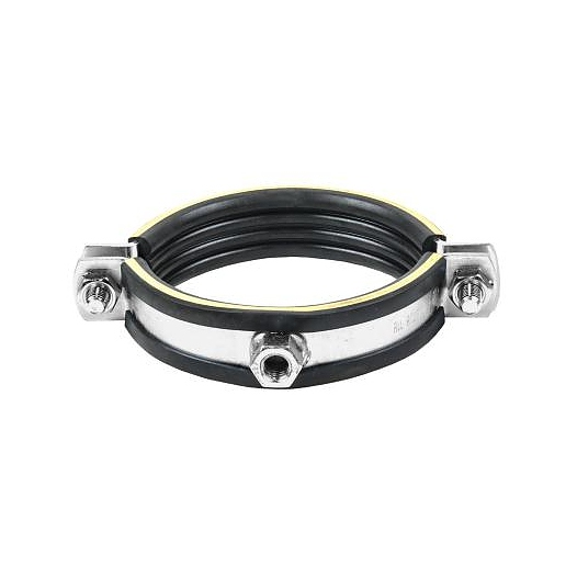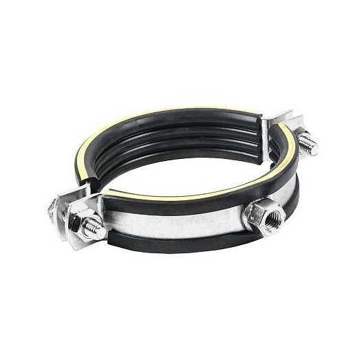 Хомут трубный Mupro Дн 108-118 (4") М12 б/к SBC используется для трубопроводов с динамичными нагрузками в соединении с подвижными опорами, для закрепления трубопроводов в промышленном строительстве, для закрепления кондиционерных труб, хладопроводов и канализации. Изделие выполнено из оцинкованного хомута из двух частей с виброизоляционной резиной с желтой опознавательной полосой. Дополнительные характеристики: