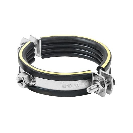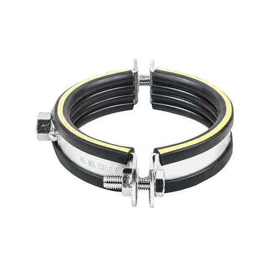Хомут трубный Mupro Дн 159-165 М12 б/к SBC используется для трубопроводов с динамичными нагрузками в соединении с подвижными опорами, для закрепления трубопроводов в промышленном строительстве, для закрепления кондиционерных труб, хладопроводов и канализации. Изделие выполнено из оцинкованного хомута из двух частей с виброизоляционной резиной с желтой опознавательной полосой. Дополнительные характеристики: