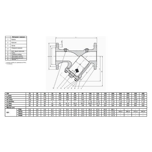 Фильтр сетчатый Zetkama Y-образный чугун Ду 50 Ру16 Тмакс=300 oC фл 821А