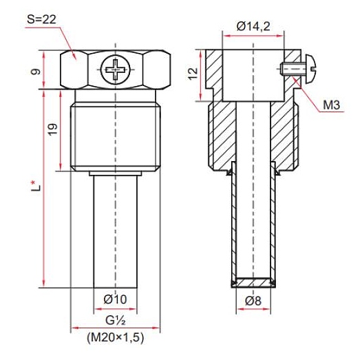 Гильза Росма БТ серии 211 используется как барьер между технологической средой и окружающим пространством, защищая термометр, а также обеспечивая возможность замены термометра в процессе эксплуатации. Корпус изделия выполнен из нержавеющей стали. Дополнительные характеристики: