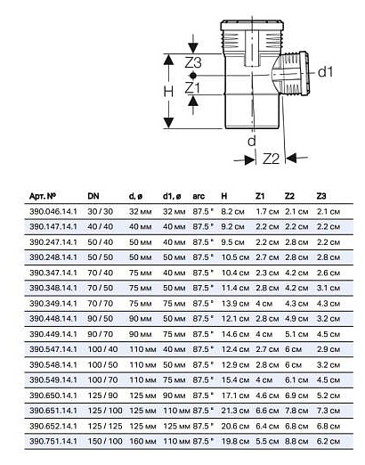 Тройник бесшумный Geberit Silent-PP Дн 90х50х87,5 гр б/нап в/к