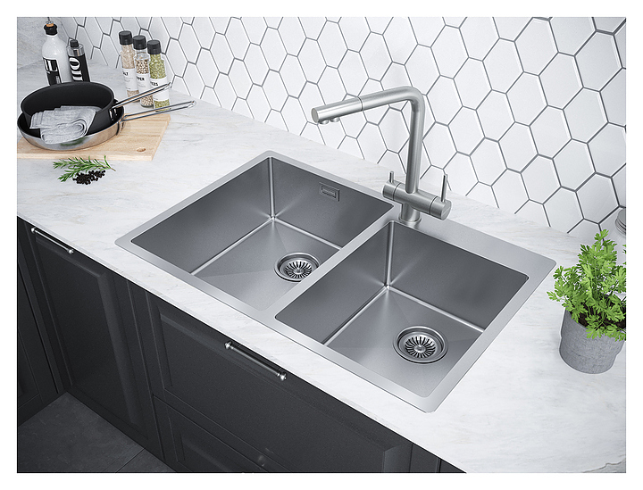 Мойка Paulmark Berman PM517851-BS предназначена для рационального планирования рабочего места на кухне. Вместительная чаша большого размера и небольшая дополнительная чаша расположены параллельно друг другу. Дополнительная чаша имеет широкую заднюю поверхность для размещения смесителя и аксессуаров. Модель устанавливается сверху, снизу или в один уровень со столешницей. Изделие выполнено из нержавеющей стали, которая отличается надежностью, ударопрочностью и стойкостью к износу. В комплект поставки входят крепления, сливная арматура, сифон, сливы-переливы и корзинчатый вентиль. Дополнительные характеристики: