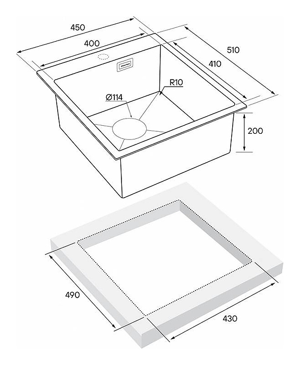 Мойка Paulmark Favore PM214551-BG предназначена для рационального планирования рабочего места на кухне. Модель оснащена широкой задней поверхностью с готовым отверстием для размещения смесителя. Мойка устанавливается сверху, снизу или в один уровень со столешницей. Изделие выполнено из нержавеющей стали, которая отличается надежностью, ударопрочностью и стойкостью к износу. Дополнительные характеристики: