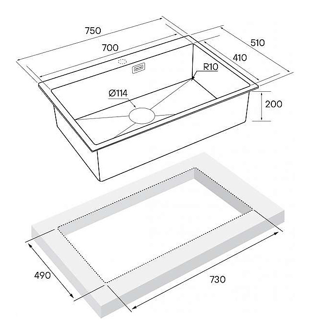 Мойка Paulmark Vast PM217551-BS предназначена для рационального планирования рабочего места на кухне. Модель оснащена широкой задней поверхностью с готовым отверстием для размещения смесителя. Мойка устанавливается сверху, снизу или в один уровень со столешницей. Изделие выполнено из нержавеющей стали, которая отличается надежностью, ударопрочностью и стойкостью к износу. Дополнительные характеристики: