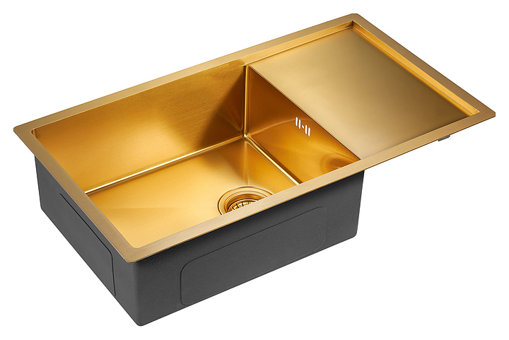 Мойка Paulmark Wing PM217844-BG предназначена для рационального планирования рабочего места на кухне. Крыло-сушилка служит подставкой для посуды и продуктов. Мойка устанавливается сверху или в один уровень со столешницей. Изделие выполнено из нержавеющей стали, которая отличается надежностью, ударопрочностью и стойкостью к износу. Дополнительные характеристики: