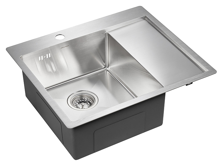 Левосторонняя мойка Paulmark Flank PM225951-BSL предназначена для рационального планирования рабочего места на кухне. Модель оснащена широкой задней поверхностью для размещения смесителя и аксессуаров. Крыло-сушилка служит подставкой для посуды и продуктов. Мойка устанавливается сверху или в один уровень со столешницей. Изделие выполнено из нержавеющей стали, которая отличается надежностью, ударопрочностью и стойкостью к износу. Дополнительные характеристики: