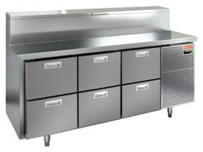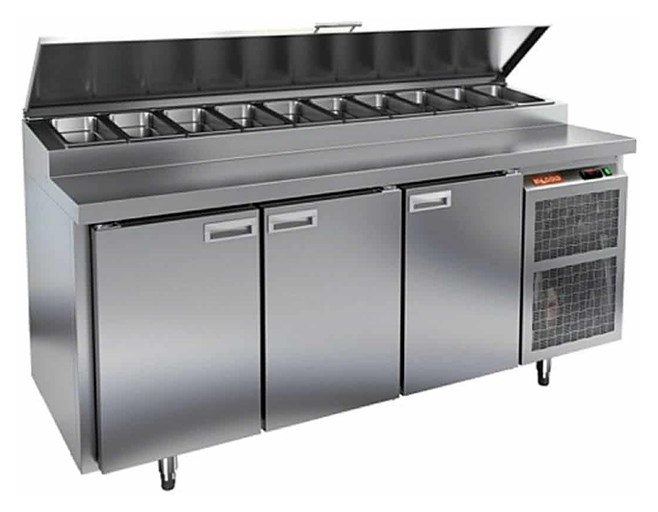 Стол для пиццы HICOLD PZ2-222/GN используется на предприятиях общественного питания и торговли для раскатки теста и обработки ингредиентов, используемых для приготовления пиццы, салатов и других блюд, а также для охлаждения и кратковременного хранения скоропортящихся продуктов и напитков. Модель совмещает в себе рабочую поверхность и охлаждаемый объем, что значительно упрощает работу повара, так как все необходимые компоненты всегда находятся под рукой. Корпус и столешница выполнены из нержавеющей стали. Особенности: