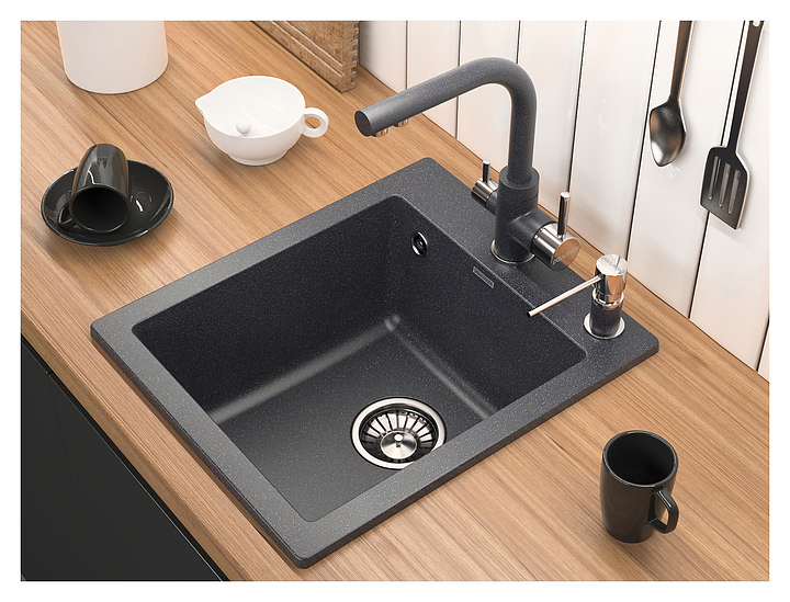 Мойка Paulmark Leer PM104249-BLM предназначена для рационального планирования рабочего места на кухне. Модель оснащена широкой задней поверхностью для размещения смесителя и аксессуаров и одинарным телескопическим сифоном с круглым переливом TRUST PM1022-CR, благодаря уникальной конструкции которого под кухонной мойкой освобождается пространство для бытовых принадлежностей, а также предусмотрена возможность подключения стиральных и посудомоечных машин. Изделие выполнено из кварцевого композита, который отличается высокой прочностью, устойчивостью к царапинам, долговечностью, безопасностью и экологичностью, а также имеет гладкую поверхность без пор, гарантирующую гигиеничность. В комплект поставки входят крепления, сливная арматура, сифон, слив-перелив и корзинчатый вентиль. Особенности: