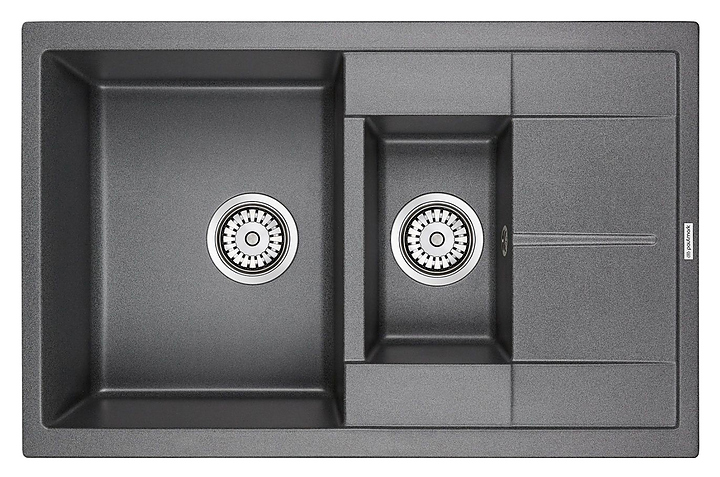 Мойка Paulmark Feste PM237850-DG предназначена для рационального планирования рабочего места на кухне. Вместительная чаша большого размера и небольшая дополнительная чаша расположены параллельно друг другу. Модель имеет 2 намеченных отверстия для смесителя, оснащена широкими поверхностями вокруг малой чаши для размещения смесителя и аксессуаров и двойным телескопическим сифоном с круглым переливом TRUST PM1023-CR, благодаря уникальной конструкции которого под кухонной мойкой освобождается пространство для бытовых принадлежностей, а также предусмотрена возможность подключения стиральных и посудомоечных машин. Крыло-сушилка служит подставкой для посуды и продуктов. Изделие выполнено из кварцевого композита, который отличается высокой прочностью, устойчивостью к царапинам, долговечностью, безопасностью и экологичностью, а также имеет гладкую поверхность без пор, гарантирующую гигиеничность. В комплект поставки входят крепления, сливная арматура, сифон, слив-перелив и корзинчатый вентиль. Дополнительные характеристики: