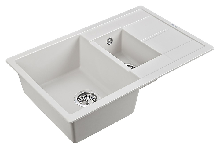 Мойка Paulmark Feste PM237850-WH предназначена для рационального планирования рабочего места на кухне. Вместительная чаша большого размера и небольшая дополнительная чаша расположены параллельно друг другу. Модель имеет 2 намеченных отверстия для смесителя, оснащена широкими поверхностями вокруг малой чаши для размещения смесителя и аксессуаров, и двойным телескопическим сифоном с круглым переливом TRUST PM1023-CR, благодаря уникальной конструкции которого под кухонной мойкой освобождается пространство для бытовых принадлежностей, а также предусмотрена возможность подключения стиральных и посудомоечных машин. Крыло-сушилка служит подставкой для посуды и продуктов. Изделие выполнено из кварцевого композита, который отличается высокой прочностью, устойчивостью к царапинам, долговечностью, безопасностью и экологичностью, а также имеет гладкую поверхность без пор, гарантирующую гигиеничность. В комплект поставки входят крепления, сливная арматура, сифон, слив-перелив и корзинчатый вентиль. Дополнительные характеристики: