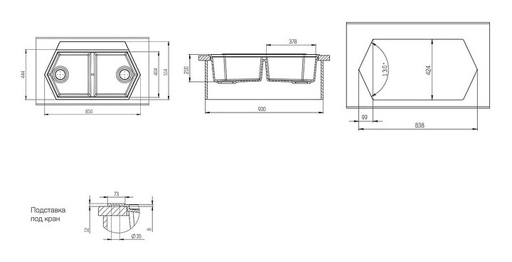 Мойка кухонная KitKraken Gulf Graphite K-850.2B.7024 графит